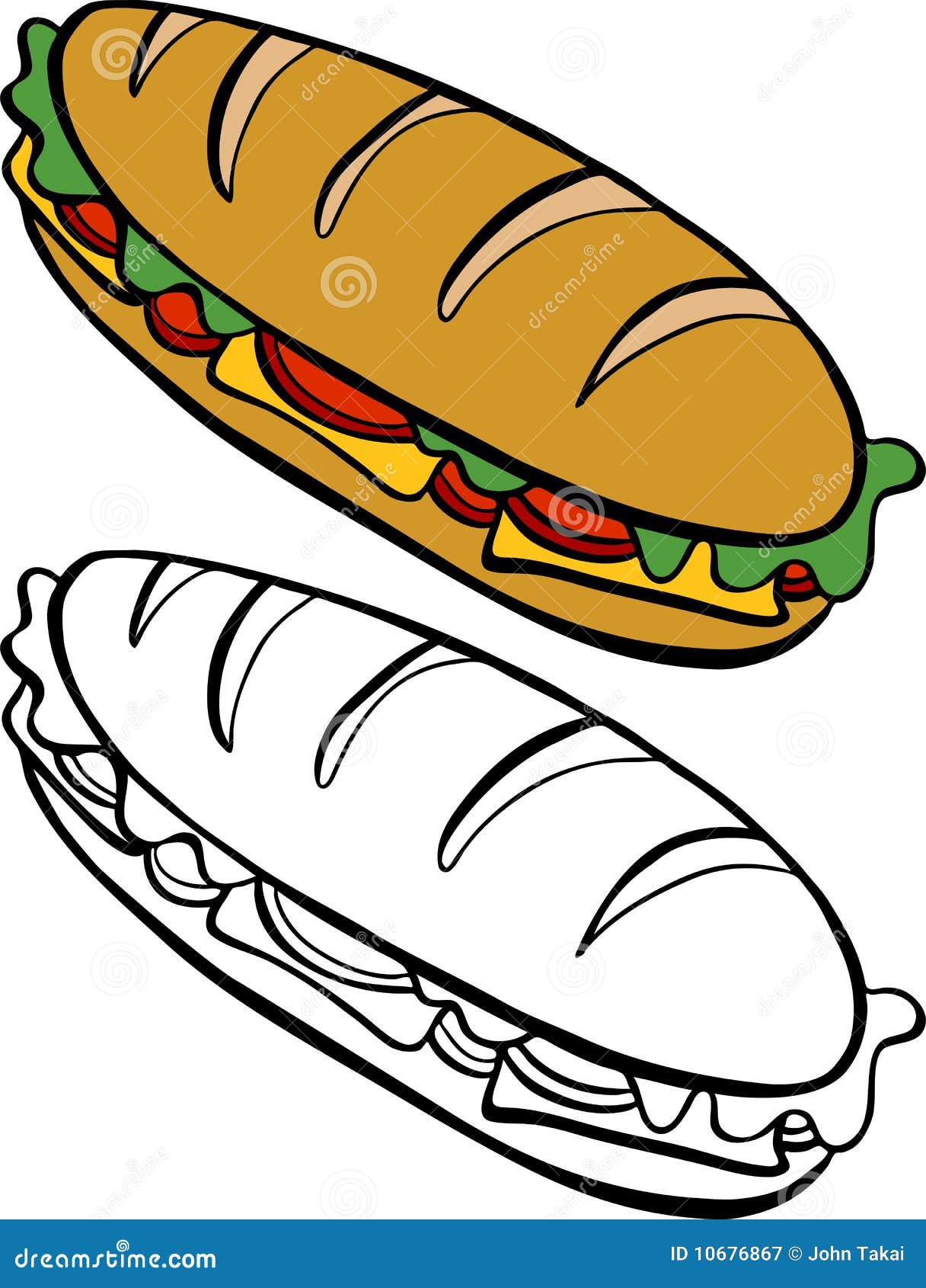 sub clip sandwich cartoon fotosearch freehand drawn.